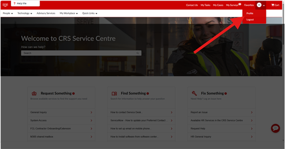How to update your preferred contact • Visit the CRS Service Centre • Click the arrow beside your initials in the top right corner and select Profile |